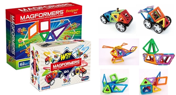 它利用方形、梯形、三角形等形狀,用磁鐵作為連接,可以拼成球體、錐體、正方體,然後利用這些基本圖形做延伸,變化成各種形體,從遊戲中可以訓練小朋友的數理觀念和空間感,還可以和附件中的輪胎結合成各種交通工具!