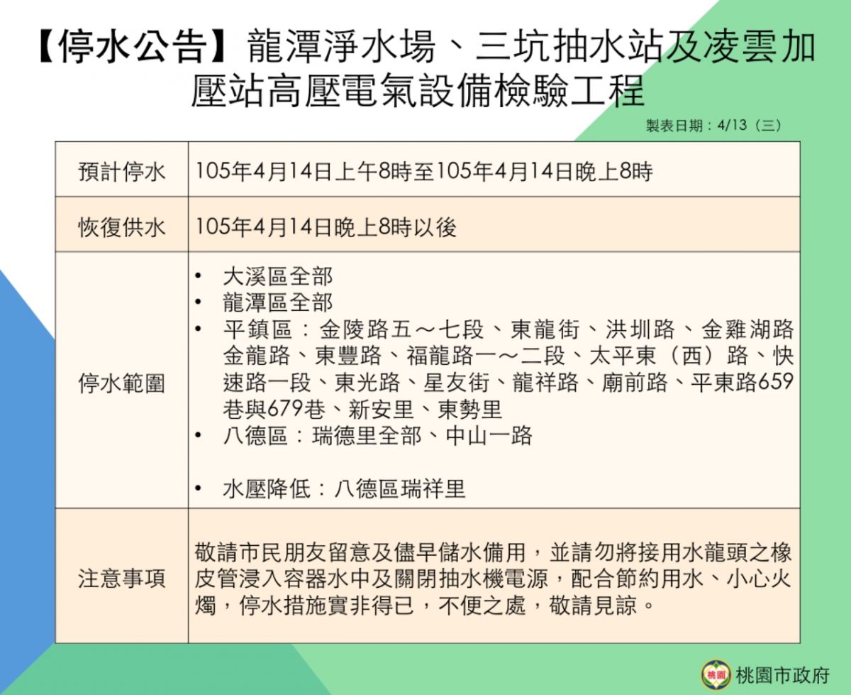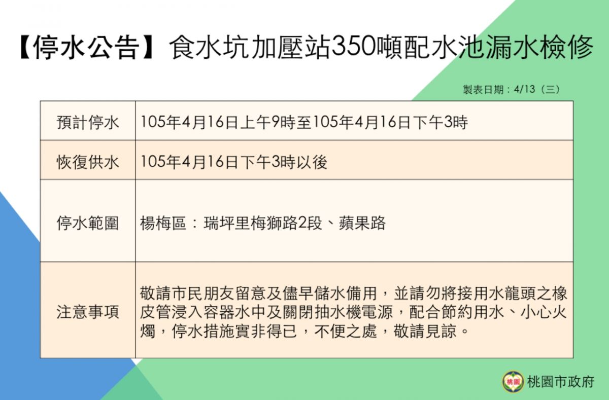◎4/14停水資訊:http://goo.gl/NwBdqs ◎4/16停水資訊:http://goo.gl/uglswt